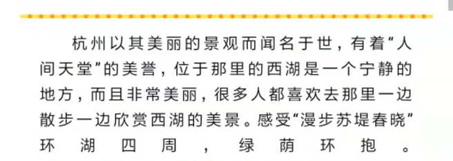 而聞名于世,有著“人間天堂”的美譽,位于那里的西湖是一個寧靜的地方,而且非常美麗,很多人都喜歡去那里一邊散步一邊欣賞西湖的美景。感受“漫步蘇堤春曉”環(huán)湖四周,綠蔭環(huán)抱。