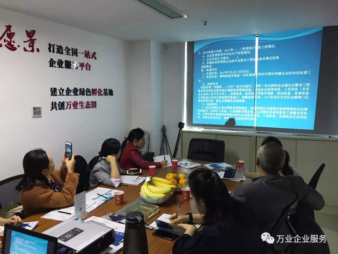 2018年第三季度數(shù)據(jù)上報(bào)工作已經(jīng)開(kāi)始,萬(wàn)業(yè)公司為各位建筑企業(yè)量身打造的"資質(zhì)維護(hù)及稅籌培訓(xùn)指導(dǎo)講座” 提供每家企業(yè)超受用的指導(dǎo)方案!于10月12日下午,安徽萬(wàn)業(yè)企業(yè)管理有限公司成功舉辦第三季度資質(zhì)動(dòng)態(tài)維護(hù)座談會(huì)!會(huì)議邀請(qǐng)了合肥建筑行業(yè)同仁,分享大家最關(guān)心的問(wèn)題:資質(zhì)日常維護(hù)如何做?動(dòng)態(tài)審核重點(diǎn)在哪里?怎樣合理規(guī)劃稅籌?
